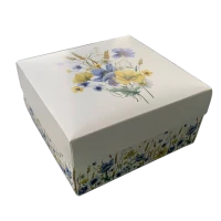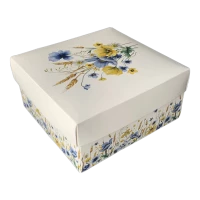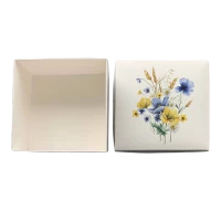 Коробка подарункова 195х195х97 мм Квіти жовто-блакитні ПДК28