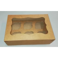 Коробка для капкейків, кексів та мафінів 6 шт 250*170*80 мм. (з віконцем) бура.