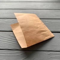 Куточок 150х140 мм. Для хот догів, млинців, вафель. Без друку. Матеріал: бурий крафт. Щільність: 50г/м2. Жиростійкий. Упаковка продається від 1 ящика (1000 одиниць в ящику)