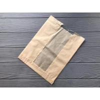 Паперовий пакет з прозорою вставкою для пакування бутербродів, макаронних виробів, солодощів, печива, кондитерських виробів, що випікаються, лікарських трав. Розміри: 300х220х50 мм Без друку. Імпорт. Матеріал: бурий крафт. Щільність: 36г/м2. Жиростійка. Упаковка продається від 1 ящика (1000 одиниць у ящику)