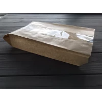Паперовий пакет з прозорою вставкою для упаковки бутербродів,макаронних виробів,солодощів,печива,асортименту кондитерських виробів,лікарських трав. Розміри: 280х140х50 мм Без друку. Щільність: 40гр/м2, Матеріал: Європа, жиростійкий. Упаковка продається від 1 ящика (1000 одиниць в ящику)