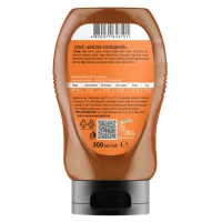 Склад: вода питна, цукор, глюкозно-фруктозний сироп, регулятор кислотності кислота оцтова, пюре абрикосове, загусники (крохмаль модифікований, камедь ксантанова), сіль кухонна, білок рослинний гідролізований (містить сою), спеції.
