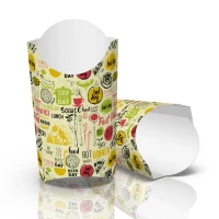 Наша упаковка для картофеля фри изготовлена из пищевого картона, который не пропускает жиры и масло. Упаковка не влияет на вкус картошки, прекрасно сохраняет тепло и исключает возможность обжечься (что немаловажно для детской аудитории). Коробка для картофеля фри превосходно ведет себя при транспортировке и может играть роль одноразовой посуды – тарелки — картофель фри не нужно пересыпать в другую емкость , достаточно положить упаковку для картошки на стол.