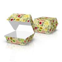 Завдяки замкам - клапанам, що закриваються, - зручна у використанні, як для продавця, так і для споживача. Картон, який ми використовуємо для виробництва упаковки для бургерів - сертифікований. Клеєні коробки для бургерів надійно захищають готовий бургер від ушкоджень і дозволяють якомога довше зберегти його температуру.