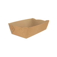 Нові картонні тарілки з ламінацією, виготовлені з харчового картону. Практичні і дуже зручні, спеціальне покриття захищає від протікання жиру і масла. Підходить для мережі ресторанів швидкого харчування. Розмір: 137х75х45 мм Мінімальний завказ - 1 упаковка (100 шт)